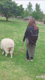 私の隣にいるのが羊のミスドちゃん